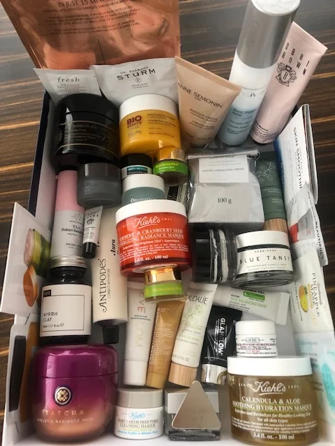While working my way through autumn adieu, I tackled my bathroom cupboards as well as my closet. And because I never met a sample I didn’t like, I found a healthy stash of stuff on the shelves.